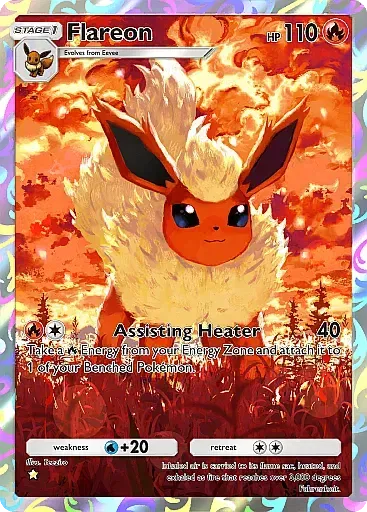 Flareon exOgnisty4 Diamond (Double Rare)Dołącza energię z odrzuconych kart; zadaje obrażenia własneAtakujący z samoleczeniem, wymaga wsparcia leczącego