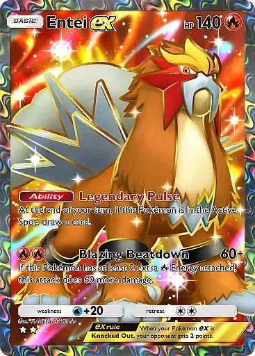 | Entei ex | Ogień | EX | „Legend Heartbeat” | Zapewnia stały dociąg kart, promuje agresywne talie, które mogą utrzymać Pokémona w Aktywnej Pozycji. |