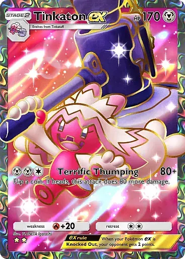 - Tinkaton ex: Posiada 160 HP i atak „Carefree Press”, który zadaje 100 obrażeń i leczy 30 HP. Jest to wytrzymały atakujący, który może używać dowolnego typu energii, co czyni go elastycznym w budowaniu talii.