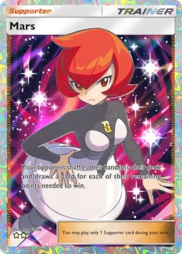 - Mars (Wspierający): Ta karta zmusza przeciwnika do przetasowania ręki do talii i dobrania kart odpowiadających liczbie pozostałych kart Nagród potrzebnych do wygrania. Jest to bardzo destrukcyjny efekt, najbardziej skuteczny, gdy przeciwnik potrzebuje tylko jednej karty Nagrody, redukując jego rękę do pojedynczej karty. Jest to karta Secret Rare znaleziona w pakietach Palkii.