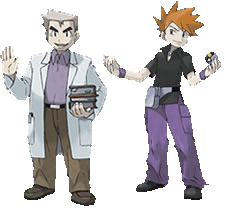 A tutaj mamy pozostałych 2 bohaterów, których jak narazie znamy. Są to Proffesor Oak ( niezbyt zmieniony, wiecznie młody :P ), a także nasz rywal w grze. Widać ten przypomina Gary'ego, ale mało prawdopodobne, aby nim był. Jego imię przypuszczalnie brzmi Blue, ale upewnimy się wkrótce.