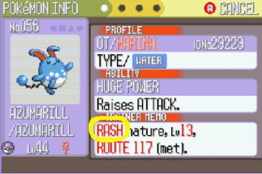 Charakter pokemona został "ukryty" w jego statsach (Summary). Wystarczy po prostu wybrać po kolei: Menu Start >> Pokemon >> pok, którego charakter chcemy sprawdzić >> Summary i viola, gotowe. Jest on napisany w miejscu oznaczonym na screenie żółtym kółeczkiem.