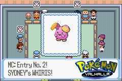 Walka będzie trudna. Zwróć uwagę na te serduszka. Pierwsza faza to prezentacja i ocena statusu przez widzów. To faza w której twoje bloki odgrywają kluczową rolę. Ten Whismur to mój rywal...he he. Im więcej serduszek tym bardziej widzowie polubili poka.