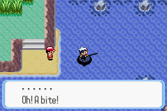 Trzeba się naprawdę nachodzić za nim. Ale jak go zobaczysz to rzuć pierwszy lepszy ball. Feebas jest niezwykle słaby. Powinien wpaść od razu. Złapalimy Feebasa ale to połowa sukcesu.