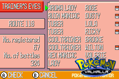 TRAINER'S EYE 69 trenerów z którymi walczymy na terenie całego Hoenn zapisuje się właśnie w tym miejscu. Zapisują miejsce spotkania, strategię, typ poków i opis. Jeżeli obok trenera widzimy pokeball tzn. że on chce z nami walczyć