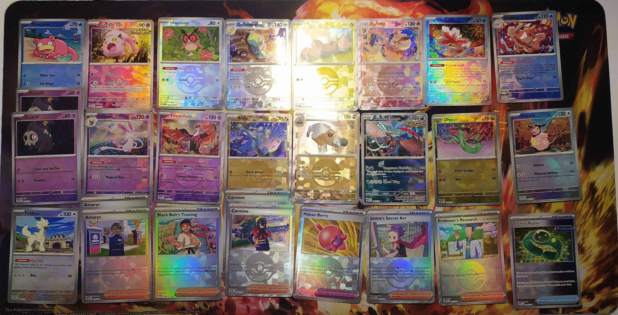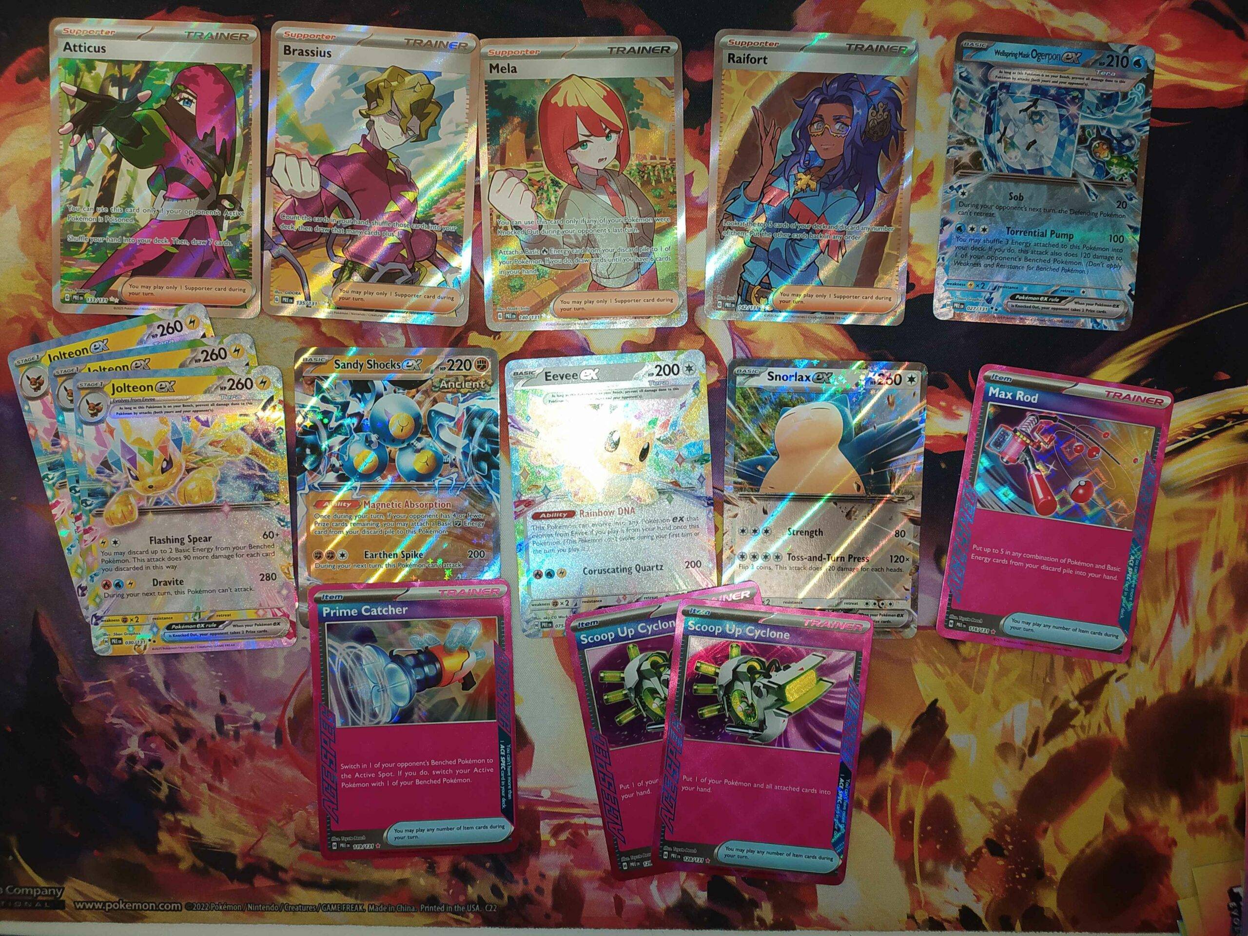 Trenerzy mogą również zbierać i wykorzystywać do gry wyjątkowe rzadkie karty ze specjalnymi ilustracjami wyróżniające się różnorodnością zachwycających stylów i efektów graficznych. Dodatkowo,Scarlet & Violet—Prismatic Evolutions zawiera dwa zestawy równoległych kart premium, z Poké Ball lub Master Ball na kartach z wytrawionym tłem.