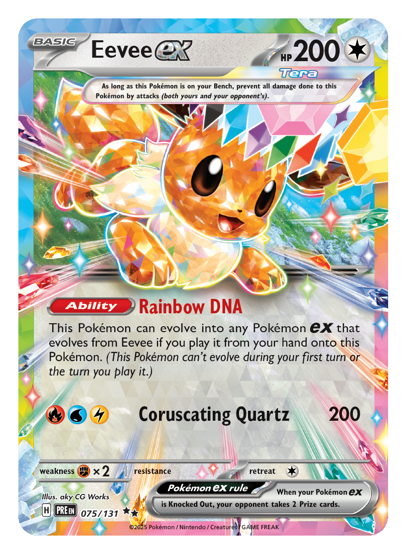Pokémon TCG: Scarlet & Violet—Prismatic Evolutions oferuje pięknie ilustrowane karty przedstawiające Eevee i jego osiem ewolucji, z których wszystkie pojawiają się jako Pokémon ex typu Stellar Tera. Rozszerzenie jest już dostępne w pakietach Elite Trainer Boxes i różnych kolekcjach, które zawierają akcesoria i przedmioty z wizerunkami tych uwielbianych przez fanów Pokémonów.