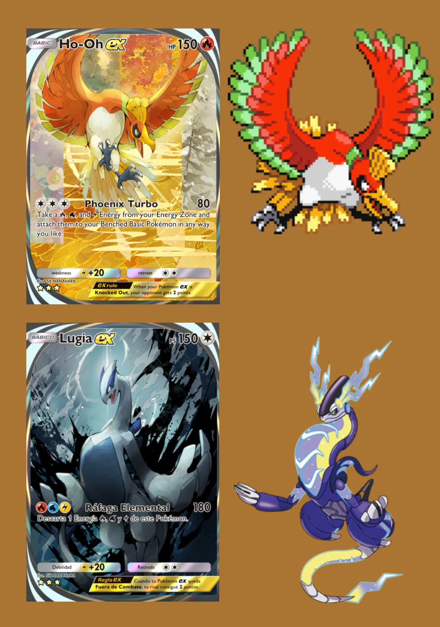 Nowe ilustracje Ho-Oh ex i Lugia ex, które zostały wprowadzone do gry, różnią się znacząco od pierwotnych wersji, które wycofano po stwierdzeniu „nieadekwatności” grafiki.